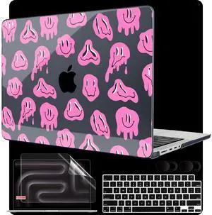 MEEgoodo Case for MacBook Pro 14 inch (M5/M4/M3/M2/M1) Pro/Max 2026 2025 2024 2023 2021, Laptop Case Fit Model A3427/A3426/A3434/A3112/A3401/A3185/A2918/A2992/A2779/A2442, Pink Groovy Emoji