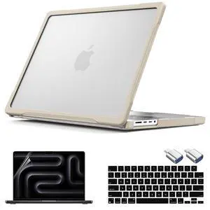 Teryeefi [Durable] & [Heavy Duty] Shockproof Case with Keyboard Cover for MacBook Pro 14 inch 2025 2024 2023 2021 M4 M3 M2 M1 Chip A3112 A3185 A3401 A2918 A2992 A2779 A2442, Beige