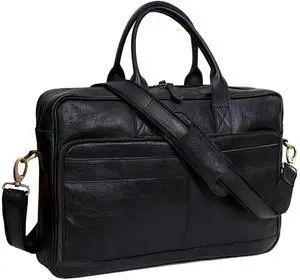 VC VINTAGE COUTURE 16 Inch Leather briefcase Laptop Messenger Bags For Men and Women Best Office College Satchel Bag (16" Black)