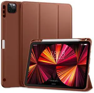 DTTO for iPad Pro 11 inch 4th/3rd/2nd/1st Generation 2022/2021/2020/2018 Case, Smart Slim Trifold Stand Soft TPU Back Cover with Built-in Pencil Holder, Also Fit iPad Air 5/4,Brown