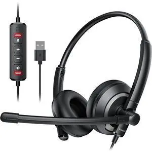 awatrue EH05-U Wired USB Headset with Noise Cancelling Microphone for PC Laptop - Headphones with In-Line Control, Lightweight, Enhanced Sound & MIC Mute