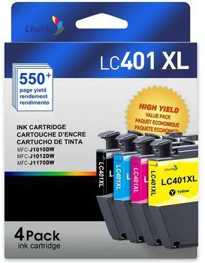 Churler LC401XL High Yield Ink Cartridge Replacement for Brother LC401XL Ink Work with MFC-J1170DW J1010DW J1012DW Printer (1 Black, 1 Cyan, 1 Magenta, 1 Yellow, 4 Pack)