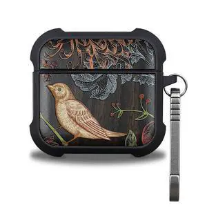 Patterit for AirPods 4 Case (2024) (USB-C), Shockproof Cover with Quick Released Keychain, Compatible with AirPods 4th Generation, Natural Wood Hand-Drawn (Botanical Birds) Dark Wood