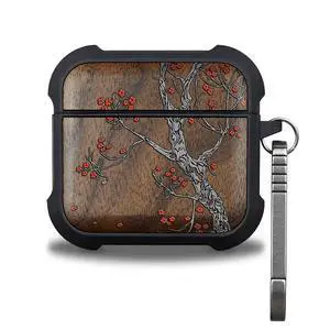 Patterit for AirPods 4 Case (2024) (USB-C), Shockproof Cover with Quick Released Keychain, Compatible with AirPods 4th Generation, Natural Wood Hand-Drawn (Crimson Bloom) Walnut