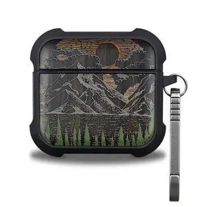 Patterit for AirPods 4 Case (2024) (USB-C), Shockproof Cover with Quick Released Keychain, Compatible with AirPods 4th Generation, Natural Wood Hand-Drawn (Mountain Dawn) Dark Wood