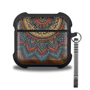 Patterit for AirPods 4 Case (2024) (USB-C), Shockproof Cover with Quick Released Keychain, Compatible with AirPods 4th Generation, Natural Wood Hand-Drawn (Sunburst Mandala) Walnut