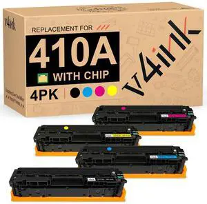 v4ink Compatible 410A Toner Cartridge Replacement for HP 410A 410X CF410A CF411A CF412A CF413A Toner Set for HP Color Pro M452dn M452dw M452nw MFP M477fnw M477fdw M477fdn M377dw Printer, 4-Pack