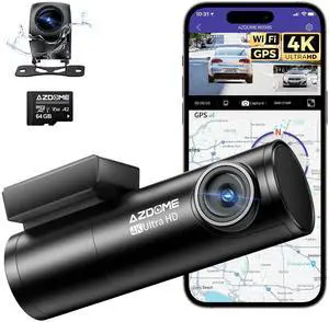 AZDOME M300S 4K Ultra HD Dual Dash Cam Front and Rear, Free 64GB Card, Built-in WiFi GPS Voice Control Car Camera, Night Vision, ADAS, 24 Hours Parking Monitor, Loop Recording (Matte Black)