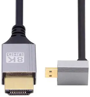 90 Degree Down Angled Micro HDMI 2.1 Ultra Thin HDTV Cable 8K 4K Hyper Super Flexible Slim Cord Type-A to Type-D for Camera HDTV
