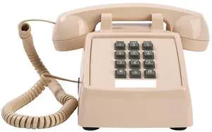 Classic Retro Landline Phone Mechanical Ringtone,2500 Desk Telephone for Hearing Impaired, Old Fashion Cord Telephone,Vintage Analog Phone for Home,School, Plug and Play, Beige