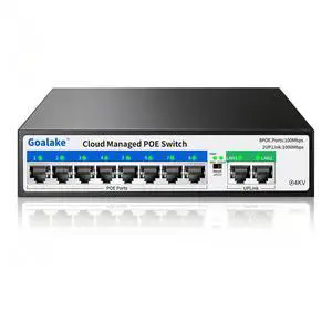 Goalake 10-Port PoE Switch (8 PoE Ports@120W Built-in Power, 2 Uplink) with Extend Function, Managed Ethernet Switch, Plug & Play, Fanless Metal Design, VLAN, QoS, Desktop/Wall Mount