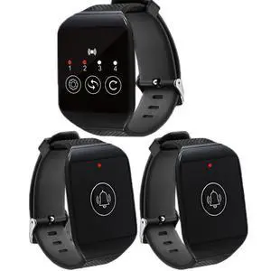 Wireless Restaurant Calling System Waiter Service Pager System with 1 Watch Button and 2 Wrist Watches for Restaurant Cafe Hospital Factory Office