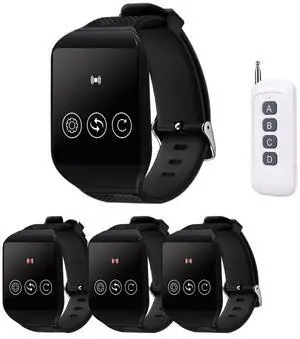 wirelesss Call System, Vibration Buzzer, wirelesss Caregiver Pager Call Bell Call System Alert with 4 Watch Receivers and 1 Transmitter for Restaurants, Cafes