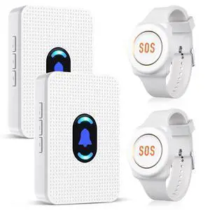 Daytech Wireless Wrist Pager Caregiver Call Button in Home System Watch Alarm Nurse Personal Help Alert for Patients Elderly 1 Watch Call Button 2 plugin Receiver