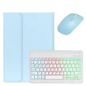 Backlit Keyboard for Galaxy Tab S9 FE+ 12.4/ Tab S10+ / Tab S9+ /S8+/S7+/S7 FE 12.4 inch Case with Mouse and Magnetic Detachable Backlight Color Keyboard,Light Blue+White