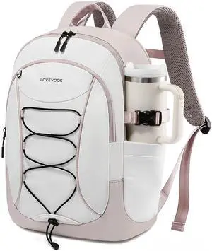 LOVEVOOK Mens Backpack with Giant Tumbler Holder Pocket,15.6 Inch Everyday Laptop Backpack Commuter Travel Work Computer Bag for Women,Casual Hiking College Teacher Back Pack Daypack,White-Beige Grey