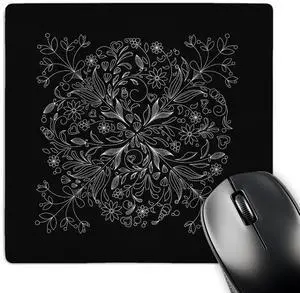 3dRose LLC 8 x 8 x 0.25 Inches Mouse Pad, Pretty Lacey Flower Decorated Square in White on A Black Background (mp_78373_1)