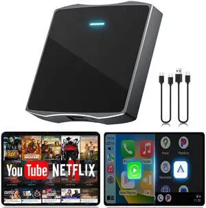 Wireless CarPlay Adapter, 2025 Upgrade Support Netflix/YouTube/TF Card Plug & Play Dongle with Apple Car Play Wireless Adapter Android Auto