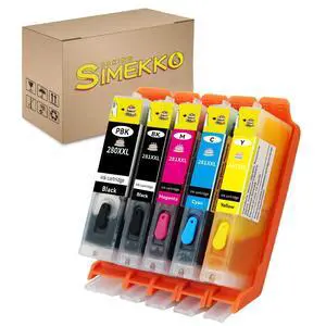 SIMEKKO PGI-280XXL CLI-281XXL Refillable Ink Cartridges, 5 Color Pack Use with PIXMA TS6120 TS6220 TS6320 TS8120 TS8220 TS8320 TR7520 TR8520 TR8620 TS9120 TS9520 TS9521C TS702