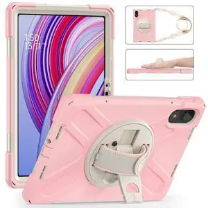 GooodiDEAR for Xiaomi Mi Pad 7/7 Pro Case, Shockproof Case with 360 Rotate Stand, Hand/Shoulder Strap, Pencil Holder, Protective Cover for Men, Women, Kids - Sakura Pink