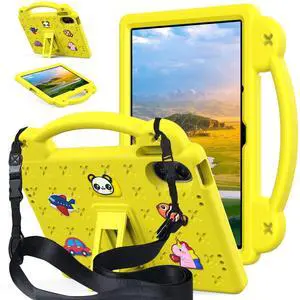AKABEILA Compatible with Xiaomi Redmi Pad 2 2025 11 inch Tablet Case, Kids Friendly Universal Lightweight Shockproof Protective Case with Shoulder Strap & Stand Handle Yellow