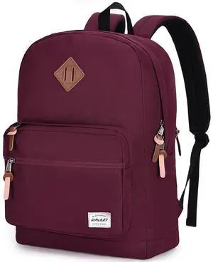 RAVUO Casual Backpack for Women, Water Resistant Classic Basic 15.6 inch Laptop Backpack Rucksack Travel Daypack Bookbag Burgundy