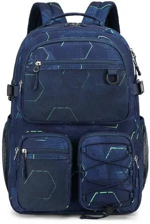 Lohol Multi-Pocket Backpack for Travel College, Heavy Duty Big Bookbag with 15.6 inch Laptop Compartment (Navy Geometry
