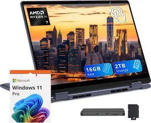 Lenovo IdeaPad 5 2-in-1 16" WUXGA Touchscreen Laptop, AMD Ryzen AI 7 350, 16GB RAM, 2TB Storage(1TB SSD+1TB Docking Station Set), AMD Radeon 860M, Backlit Keyboard, Numeric Pad, Win 11 Pro, Blue