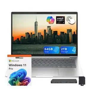 HP EliteBook 14" WUXGA Touchscreen Laptop, AMD Ryzen AI 7 350, 64GB RAM, 2TB Storage(1TB SSD+1TB Docking Station), AMD Radeon 780M, Backlit Keyboard, Copilot+PC, Win 11 Pro, Pike Silver