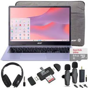 Acer Chromebook 315 15.6" Laptop Intel N4500 4GB 64GB eMMC Moonstone Purple + Samson SR350 Headphones & VidPro Wireless Mic