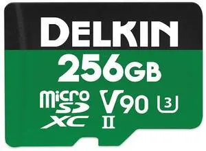 Delkin Devices Power 256GB MicroSD UHS-II (V90) - 300MB/s Read, 250MB/s Write ^^ for 8K, 4K, HDR, and 360 Video ^^ High-Performance for Cameras