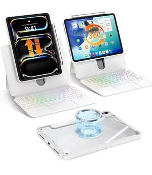 avakot Keyboard Case for iPad Pro 11 Inch (M5/M4) 2025/2024, Clear Detachable Magnetic 360 Rotatable & Liftable Cover, 7-Color Backlit, Native Gesture Trackpad, 180 Kickstand, White