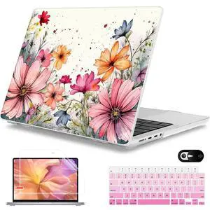 Mektron Compatible with M4 MacBook Air 15 inch Case 2025 A3241 2024 2023 M3 A3114 A2941 M2 Liquid Retina Display Touch ID, Plastic Hard Case & Keyboard Skin & Screen Protector - Hand-Painted Flowers