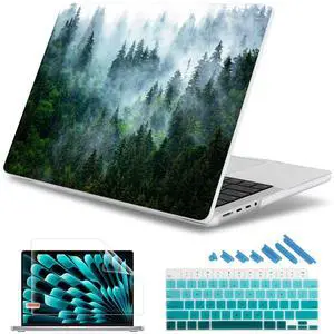 May Chen Compatible with M3 MacBook Pro 16 A2991 M2 A2780 M1 A2485 Pro/Max with Retina Display Fits Touch ID 2023 2022 2021, Hard Shell Case with Keybaord Cover & Screen Protector, Forest