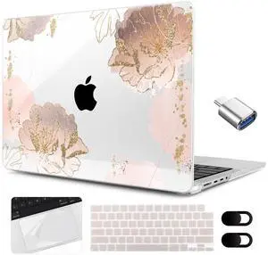 MEEgoodo Compatible with MacBook Pro 14 inch Case (M5/M4/M3/M2/M1) 2025 2024 2023 2021, Case Fit Model A3434/A3112/A3401/A3185/A2918/A2992/A2779/A2442 Pro/Max, Pink Peony Flowers