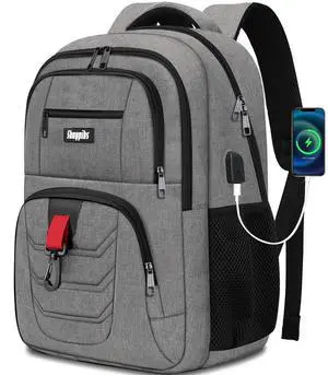 Skaypibs School Backpack for Boys Teens, Backpack for Men Women, 15.6 Inch Laptop Backpacks with USB Port, Water Resistent book bag, Work College Student Bookbag, back pack, Grey