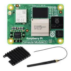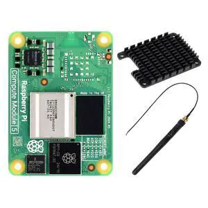 CM5 Waveshare Pi Compute Module 5Comes with an Official Raspberry Pi CM5104032 (with Wireless, 4GB RAM, 32GB eMMC Flash), an Antenna Kit and a HEATSINK. (3 Items)