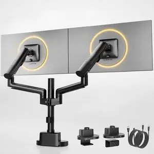 monTEK Dual Monitor Stand Mount with USB Up to 35" Screens, Each Arm Holds Max 24.3 lbs, Full Motion Adjustable Monitor Arm Desk Mount with C-Clamp/Grommet,VESA 75/100mm