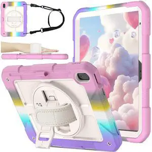 BMOUO Case for iPad (A16) 11th Generation 11" 2025/iPad 10th Generation 10.9 inch 2022, 360 Rotating Stand & Pencil Holder & Hand & Shoulder Strap Shockproof i Pad 11th/10th Generation Case, Rainbow