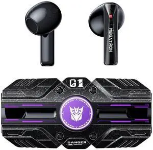 Transformers TF-T30 Bluetooth TWS Wireless Earbuds with Energy Core Design Passive Noise Cancelling Semi-in-Ear Cool HiFi HD Calling Music Game Modes Low Latency Sports Earphones (Black Megatron)