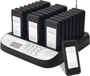 Restaurant Pager System, 16 Wireless Buzzers for Restaurant, Set with Vibration, Flashing and Buzzer, Pagers for Restaurants, Church, Hospital, Bar, Hotel,Truck,Nursery, Coffee Shop (Black)