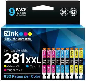 E-Z Ink Compatible Ink Cartridge Replacement for Canon CLI-281XXL CLI281XXL 281XXL to use with TR7520 TR8520 TS6120 TS6220 TS6320 TS8120 TS8220 TS9120 TS9520 TS9521C TS702 Printer (9 Pack)