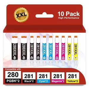 280XXL 281XXL Ink Cartridge Compatible with Canon280XL Canon281XL Replacement for PGI 280 CLI 281 XL Printer Value 10 Pack for TR8620a TR8520 TR8620 TR8600 TR7520 TS6120 TS6220 TS9120 TS6320 Printer