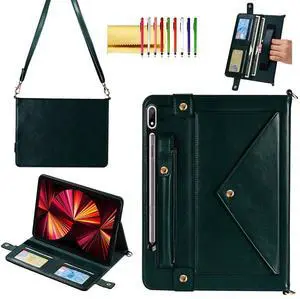 Handbag Case for iPad Pro 11-inch M4 2024 5th Gen - Techcircle Folio Stand iPad Crossbody Wallet Case with Pencil Holder, Hand Strap+Shoulder Strap Protective Cover, Red