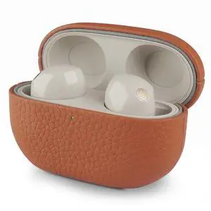 AeroZylo for Sony WF-1000XM5 Leather Case, Handcrafted Fully-Wrapped Full-Grain/Pebbled Leather for Earbuds Cover 2023 Version, Dual-Layer StructureProtective Hard Shell (Brown, Pebbled)