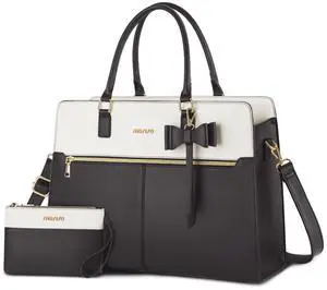 MOSISO Laptop Tote Bag for Women, 15.6 inch Waterproof PU Leather Work Bag with Clutch Purse & Bowknot, Large Capacity Handbag Shoulder Computer Bags Work Briefcase for Business Teacher Office, Gray