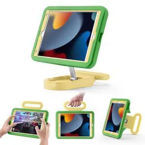 Kids Case for iPad 7th/8th/9th Gen 10.2 inch,Adjustable Portrait/Landscape Stand/Drop Proof with Handle/Kickstand,Child Friendly Protective Cover for iPad 10.2 2021/2020/2019 (GreenYellow)