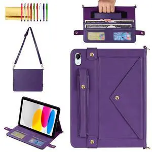 Handbag Case for iPad (A16) 11" 2025 & iPad 10th Gen 10.9", Techcircle Folio Stand PU Leather Crossbody Cover with Pencil Holder+Card Slots Wallet Case w/Shoulder Strap+Hand Strap, Purple