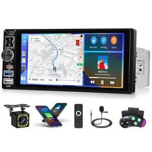 [Upgrade] 6.8 inch Single Din Car Radio with Wireless Carplay, 1 Din Bluetooth 5.2 Radio, HD IPS 1280600 Single Din Touchscreen Radio, Support FM/EQ/USB/Type-C Fast Charging/Mic/SWC
