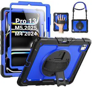 SEYMAC Case for iPad Pro 13 Inch M5 2025 / M4 2024, Heavy Duty Shockproof Protective Case with Screen Protector, 360 Rotating Stand, Hand/Shoulder Strap and Pen Holder, Blue